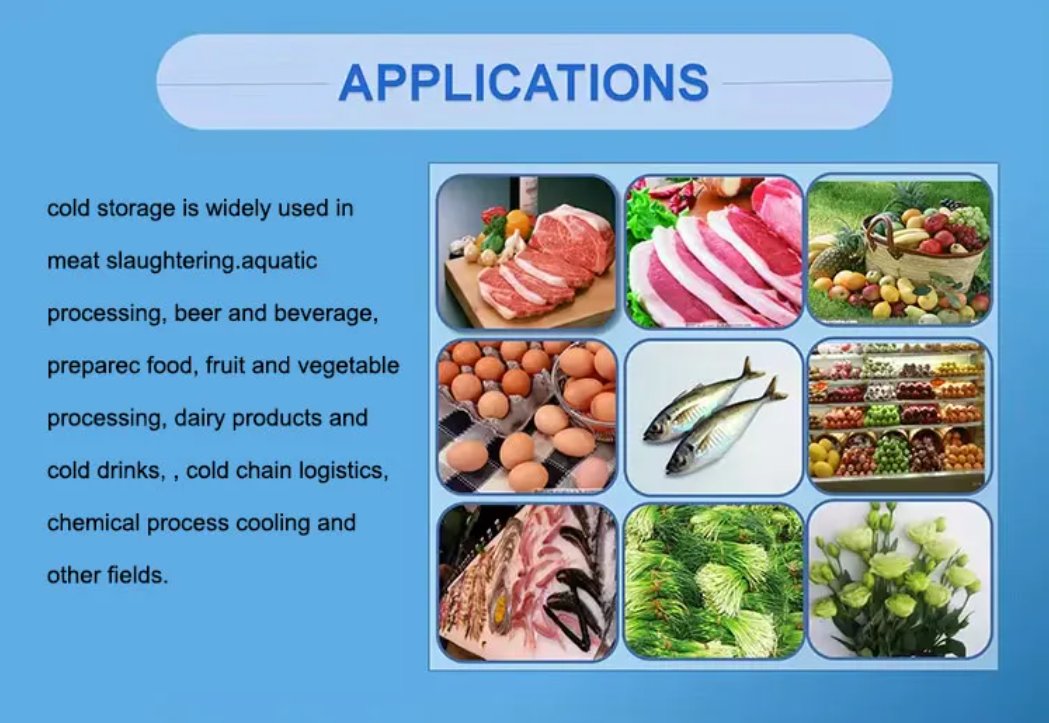 Food storage and processing: Our cold storage solutions offer optimal freezing and refrigeration for an array of perishable goods such as meat, vegetables, fruits, dairy products, and seafood, effectively extending shelf life while preserving premium quality.